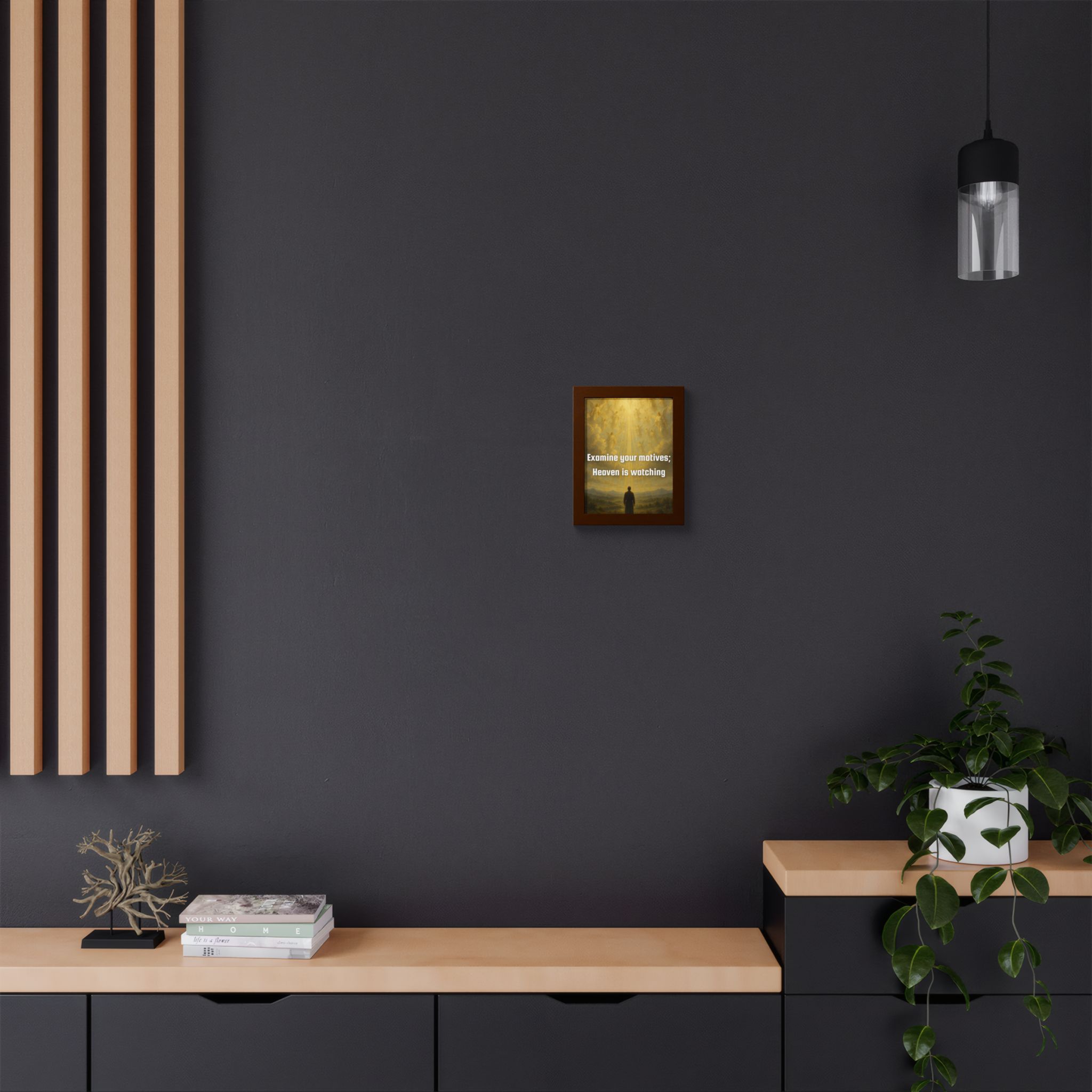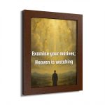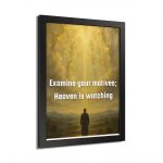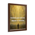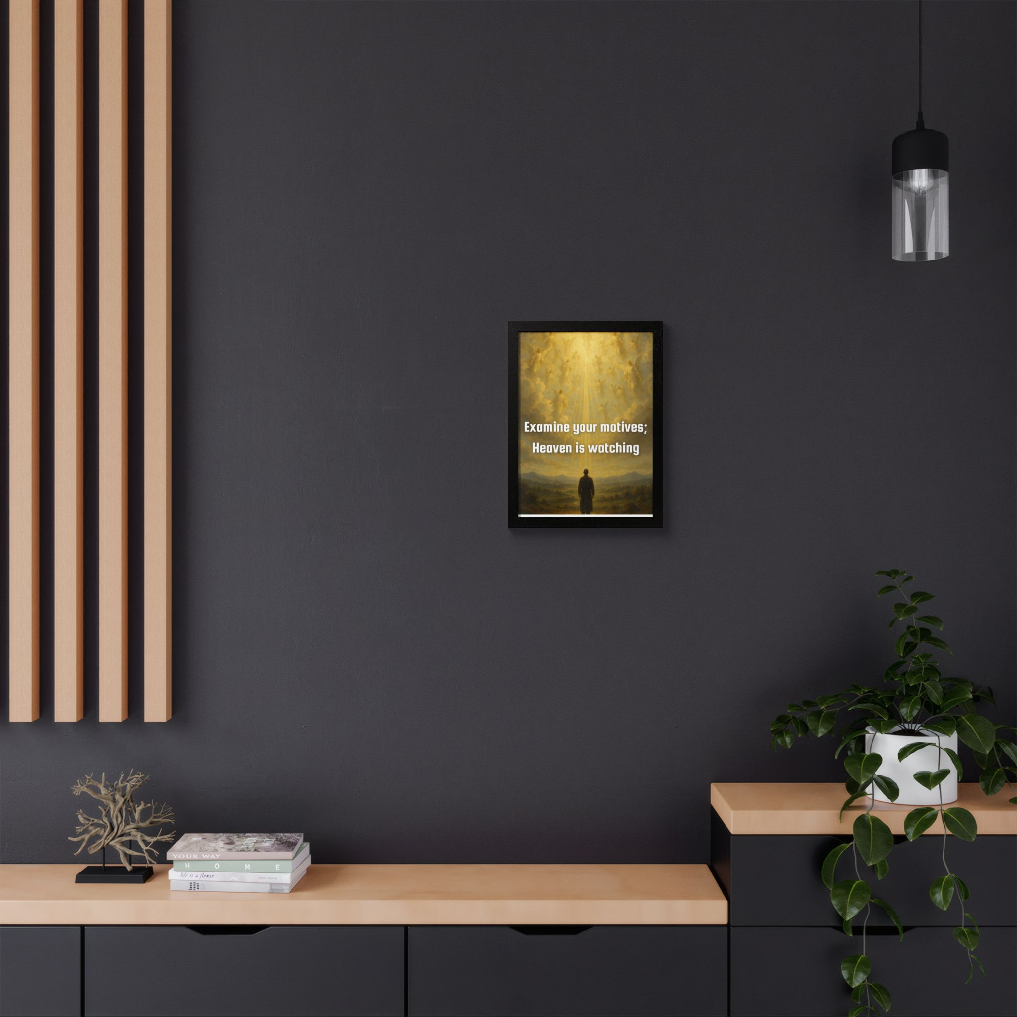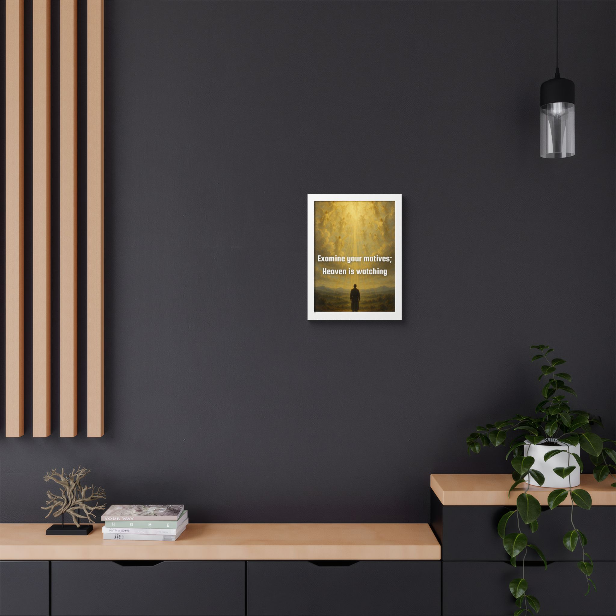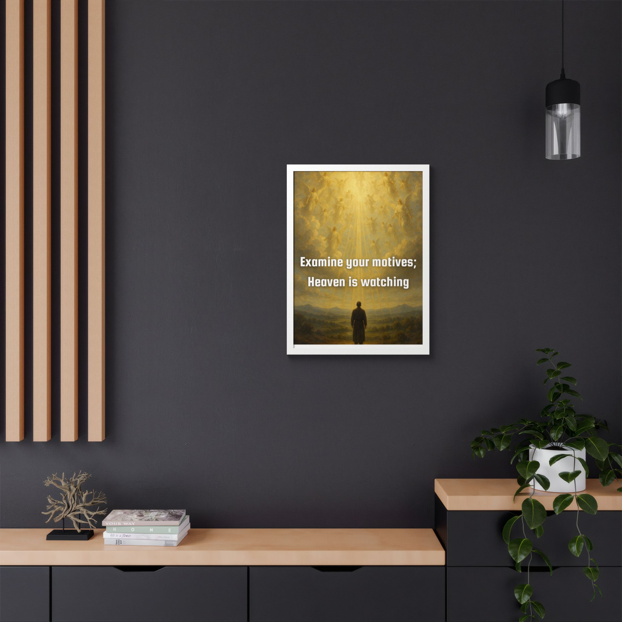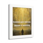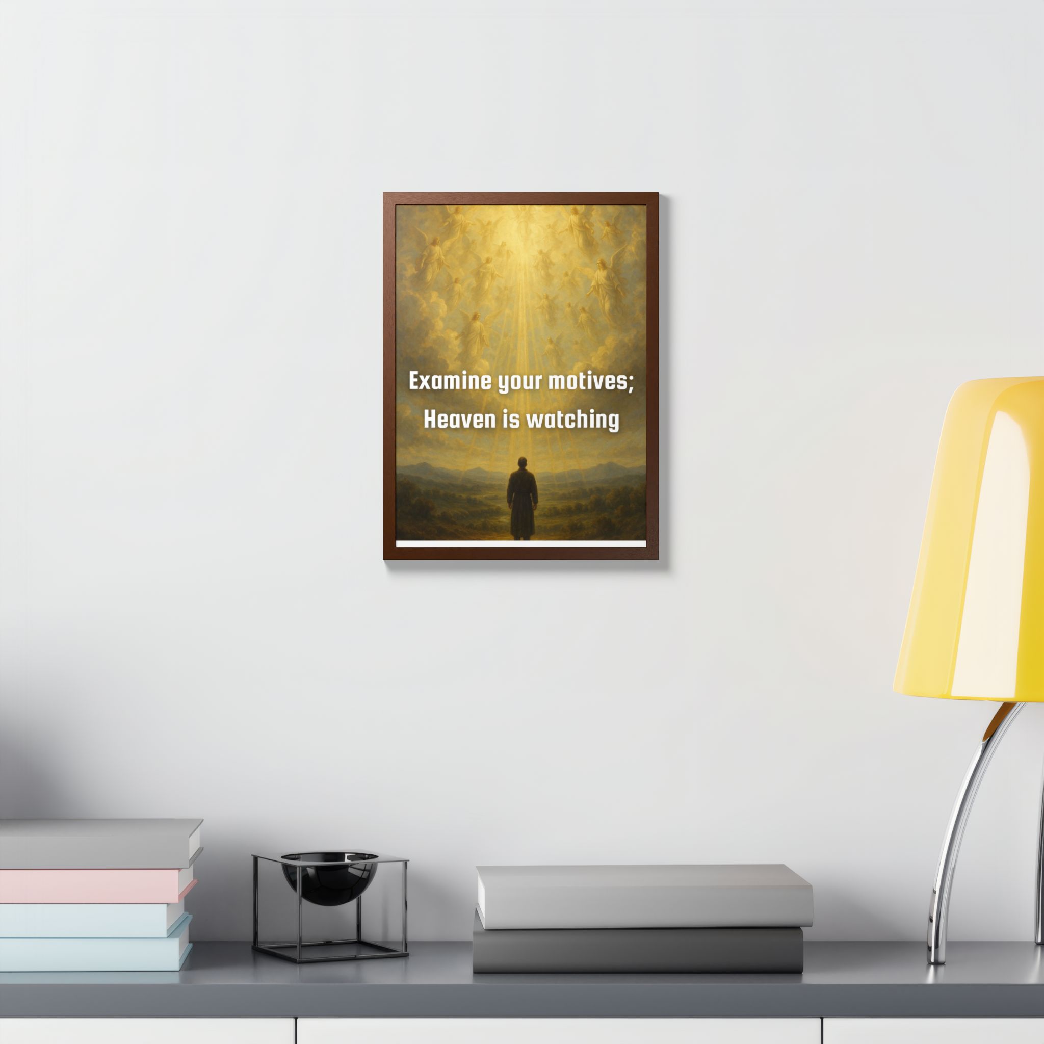 Set beneath a radiant host of angels, this poster is a gentle yet sobering reminder that our motives matter. Heaven sees not only what we do, but why we do it. This piece invites introspection, integrity, and purity of heart.