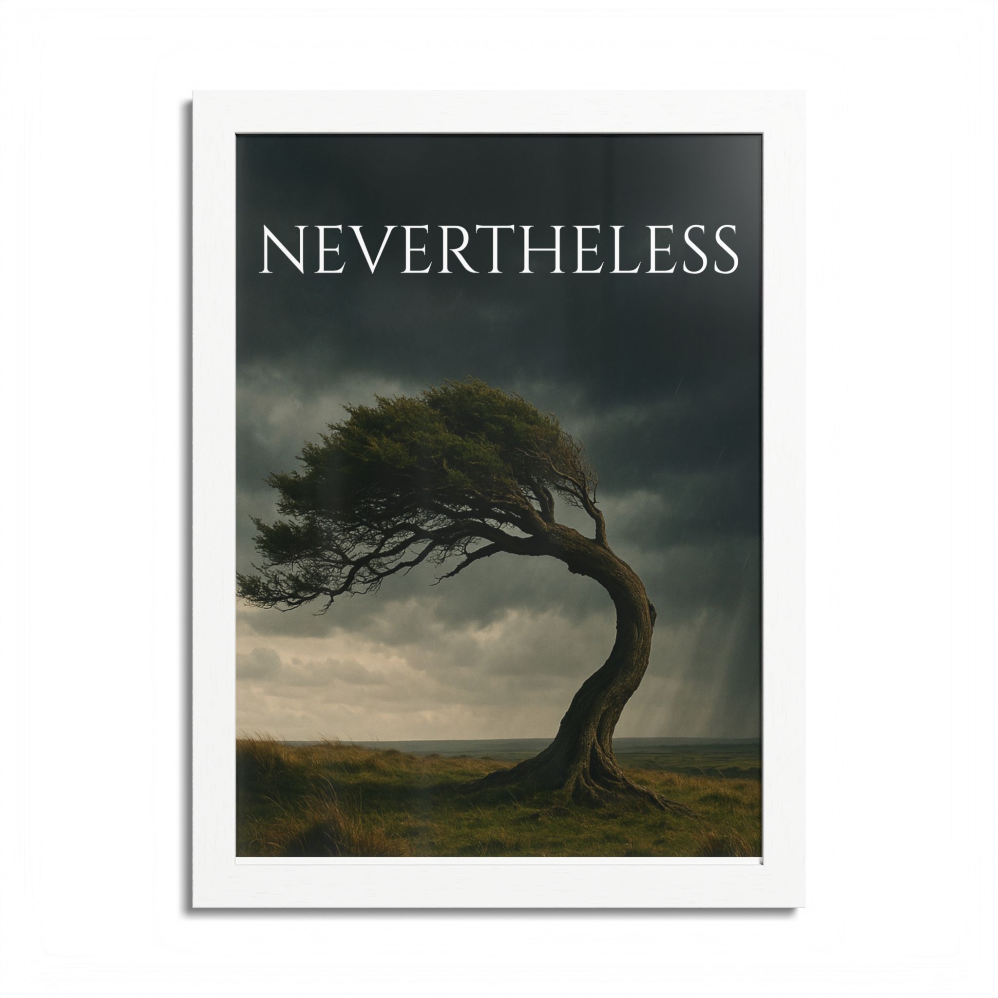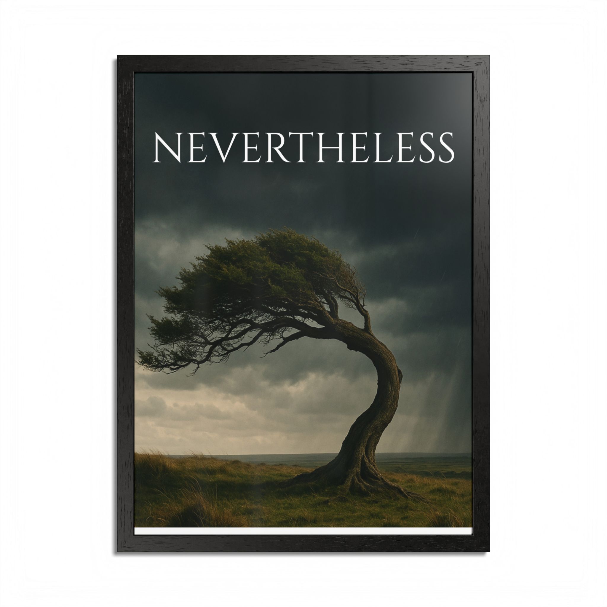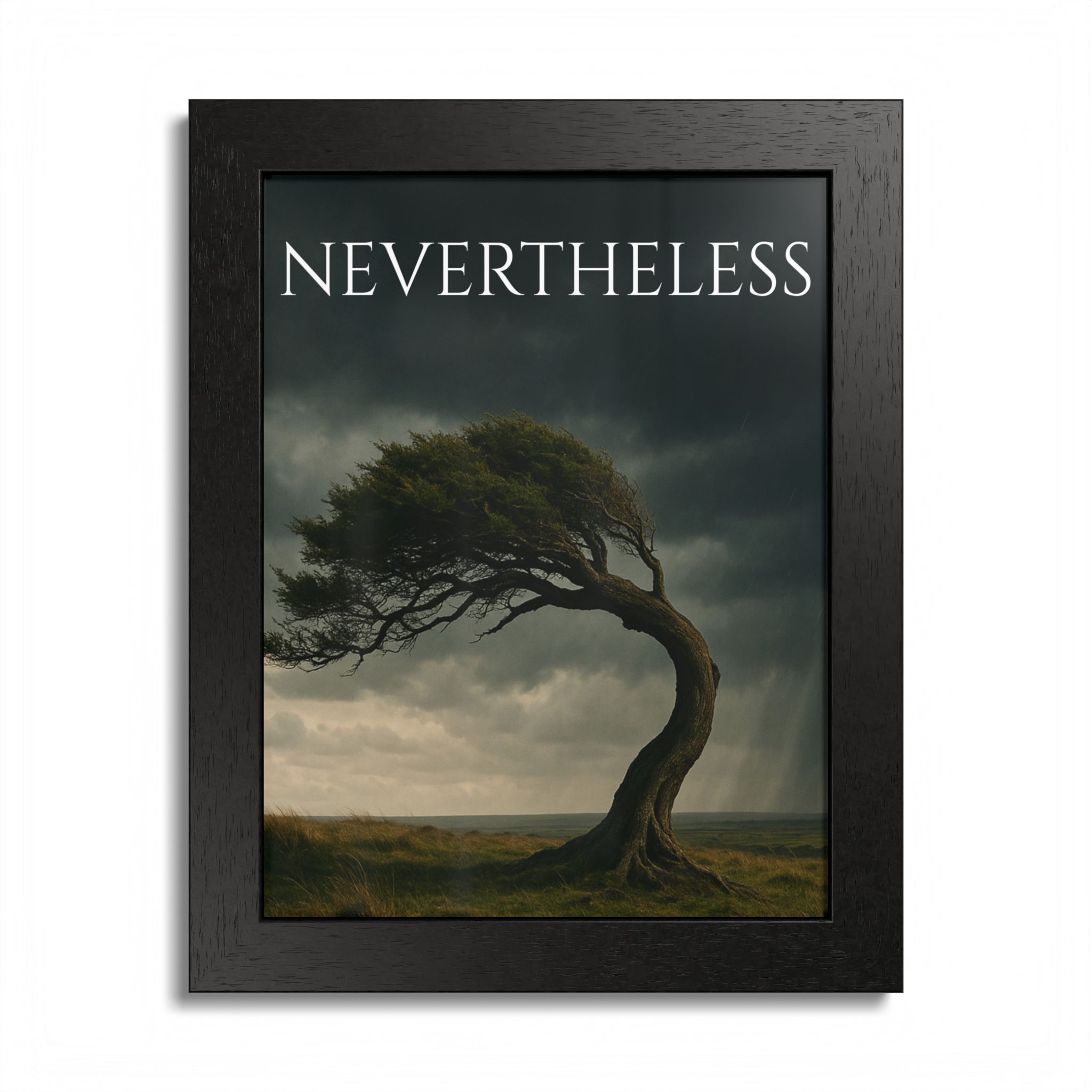 It is the word spoken when hope stands against adversity. When obedience outweighs fear. When the soul chooses God’s will over its own understanding. This solitary tree, bent yet unbroken, reflects the strength of a heart that refuses to give up.