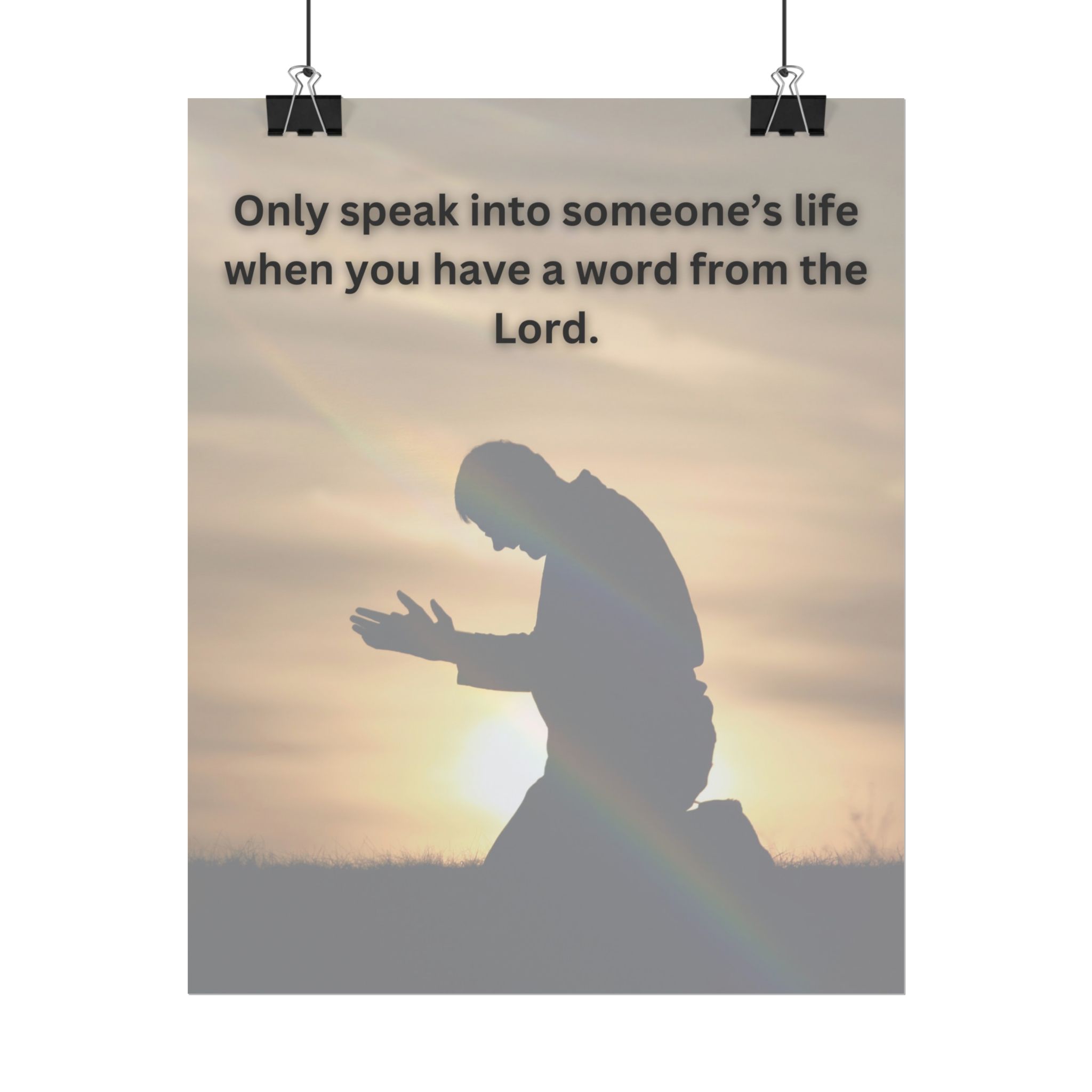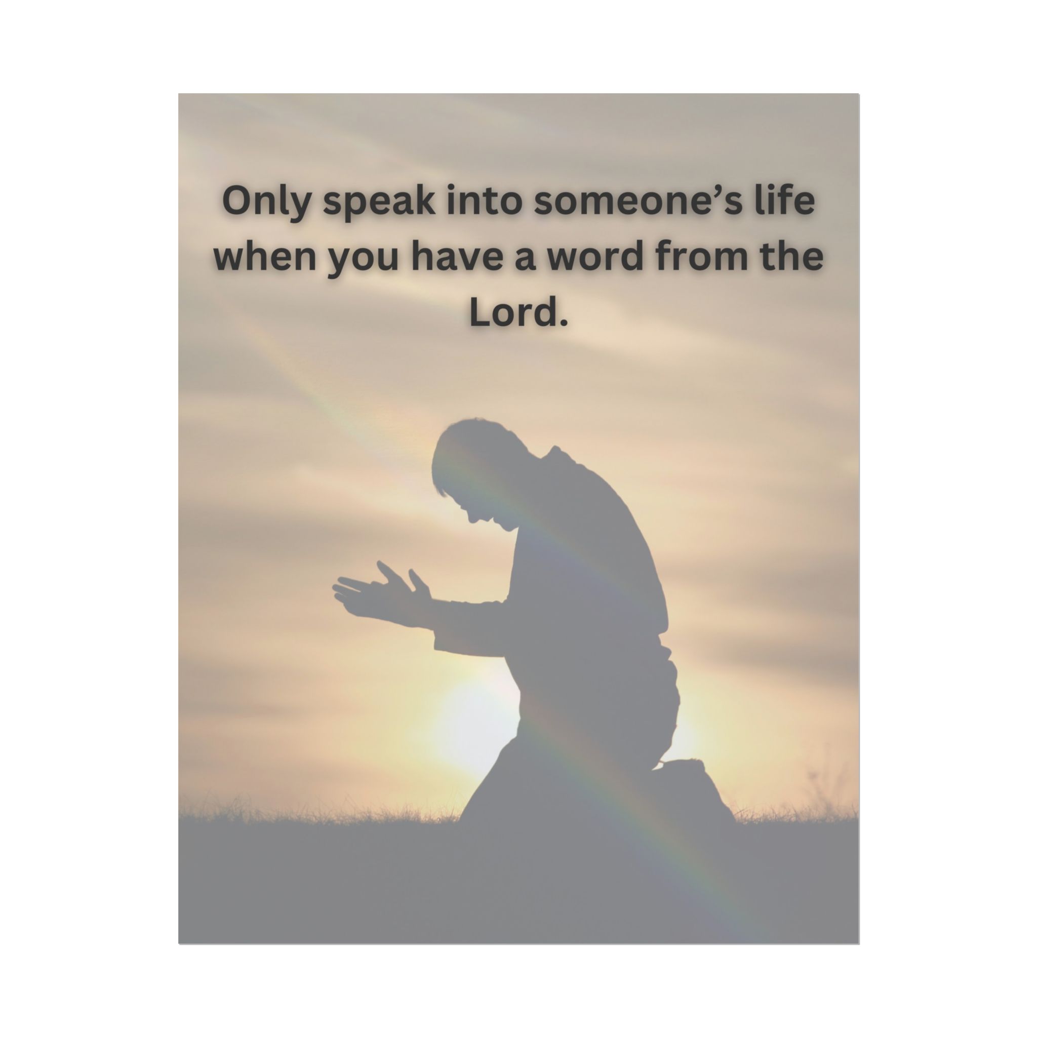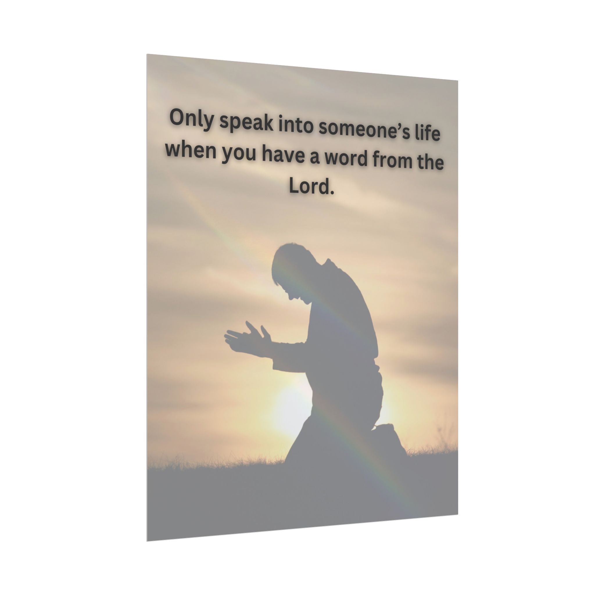 In a world full of quick opinions and noiseless counsel, this poster invites a return to reverence. The image of a kneeling figure at sunrise captures the posture from which true guidance flows — humility, listening, and surrender.
