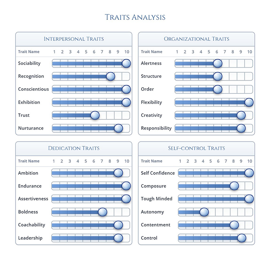 ...provides a comprehensive overview of an individual's unique personality, measuring 24 traits on a scale of 1-10. These scores are used to predict an individual's likely behaviors, some of which may conform to Biblical standards and some of which may not.